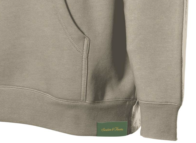 | Right or Left Hem | Sewn 0.5" up from bottom hem to bottom edge of label | Centered between the kangaroo pocket and the side seam *When there is not enough space to sew the label between the kangaroo pocket and the side seam without sewing over a seam, the label position changes to centered on the side seam. |
