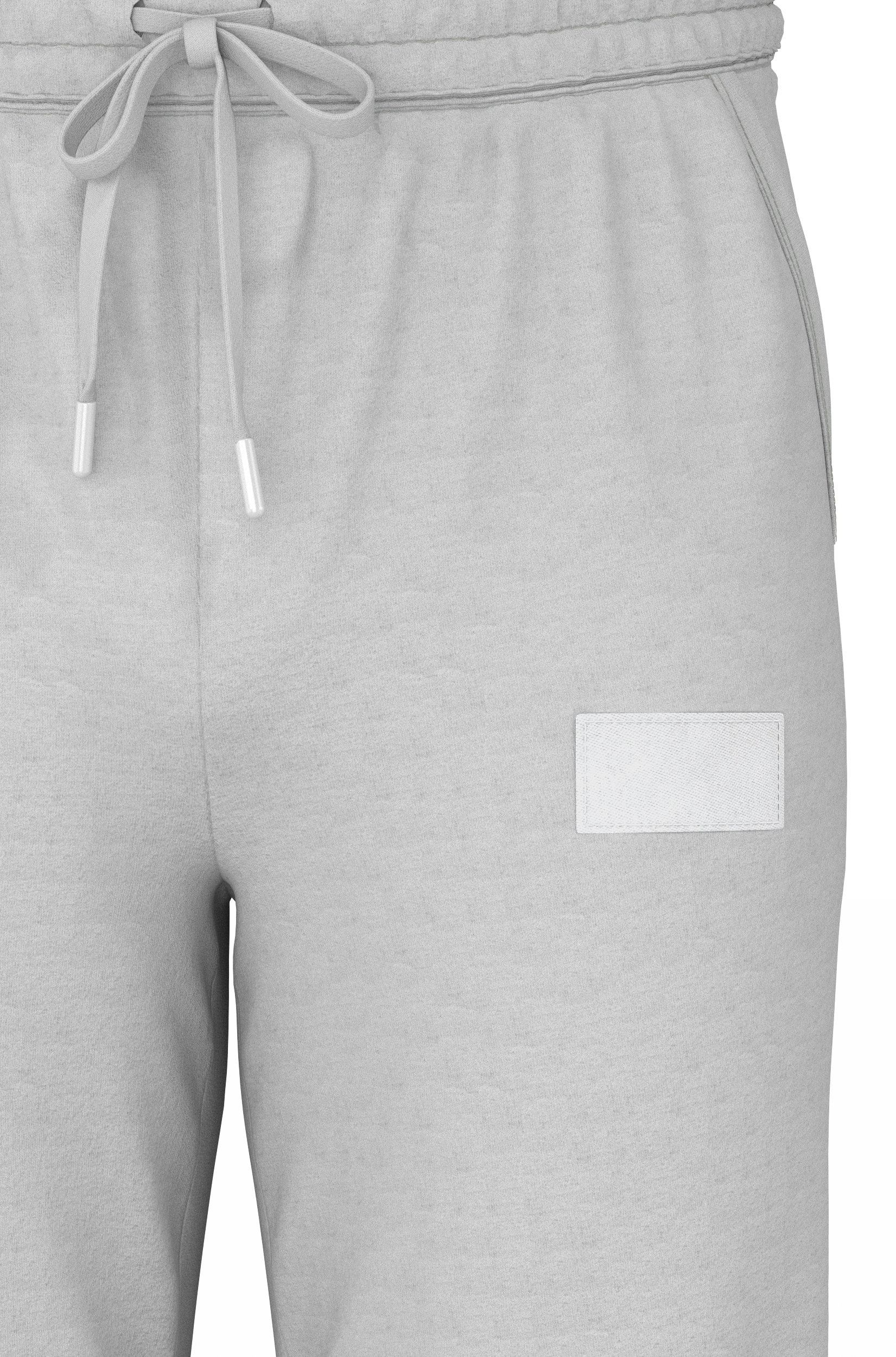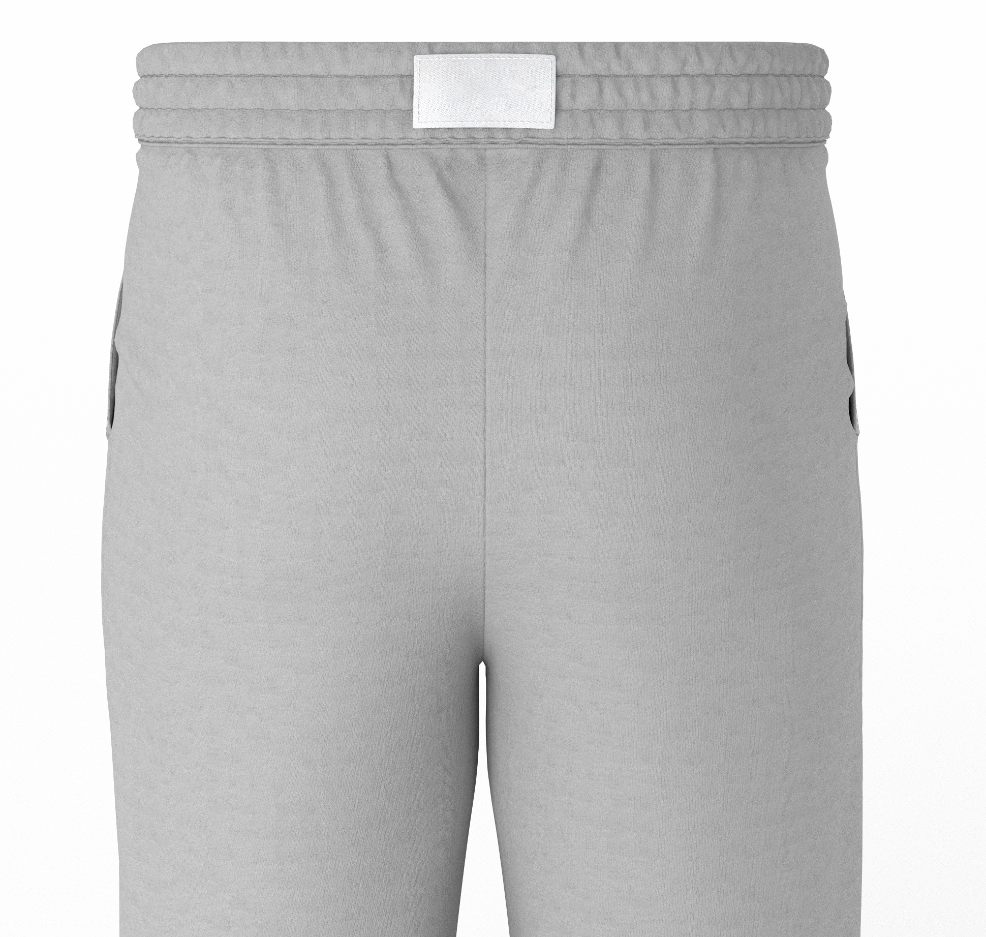 | Right or Left Leg Cuff | Sewn over the bottom edge (half of the label is visible outside of the shorts and the other half of the label is visible inside the shorts) | 2" over from side seam to the starting edge of the label |