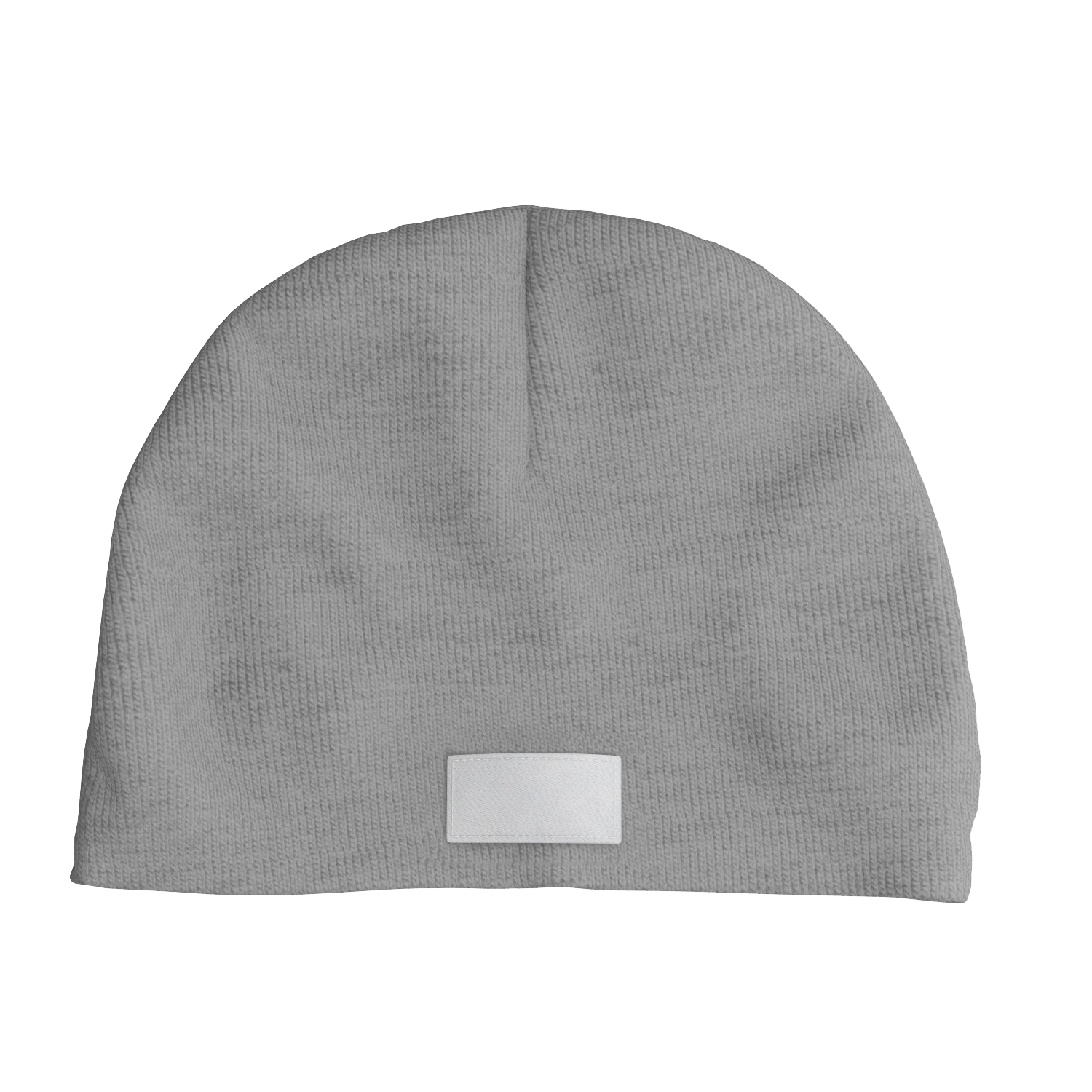 | Bottom Center | Sewn over the bottom edge of the beanie (half of the label is visible on the outside of the beanie and half of the label is visible on the inside of the beanie) | Centered left to right |
