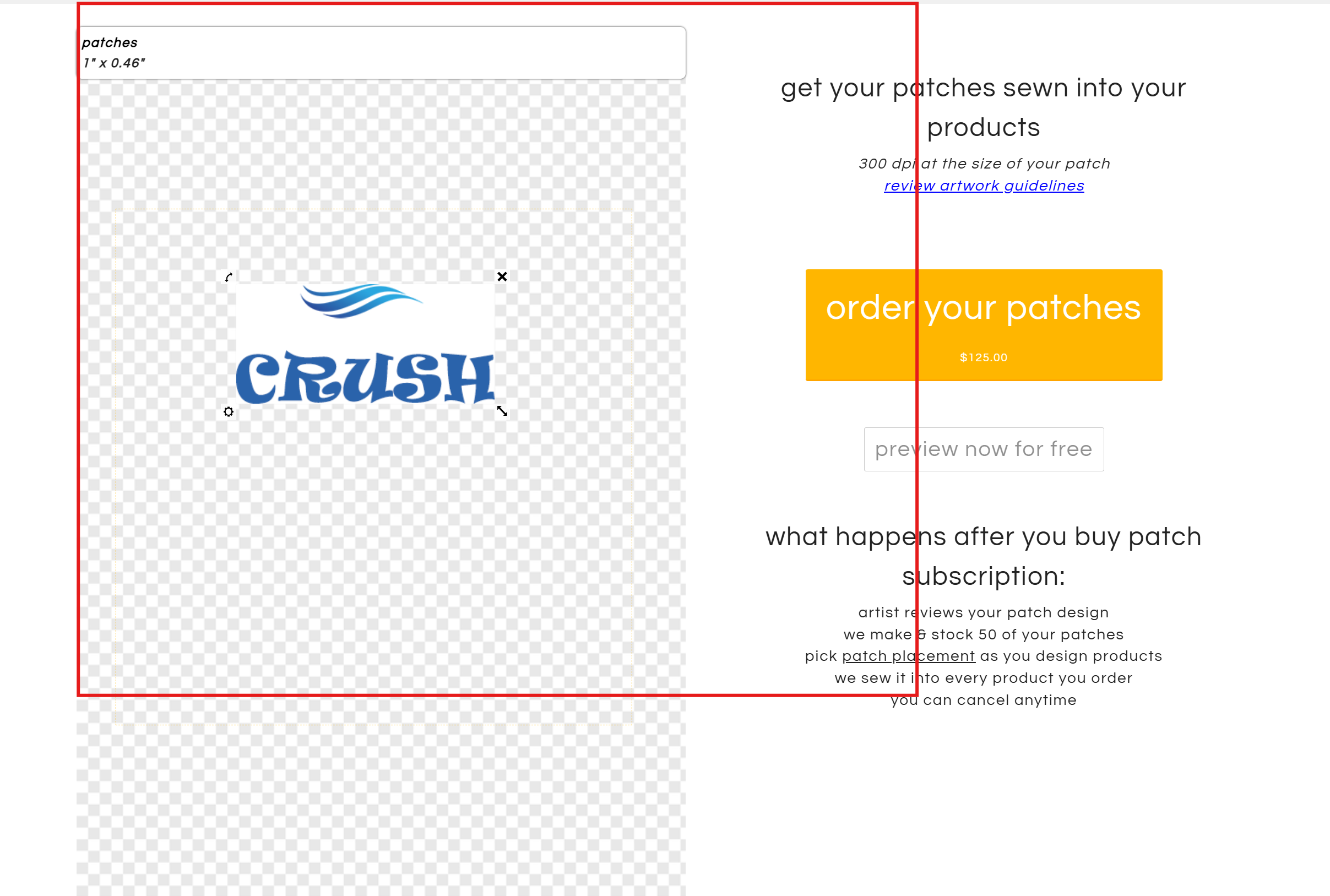 When you upload your artwork, it needs to fit the designated print or stitch area on the product. If the artwork is too large or small for the area, the mockup tool will automatically resize it, which can cause stretching, cropping, or pixelation. This can happen across all custom product types that we offer, whether you’re designing any t-shirt, labels or patches.