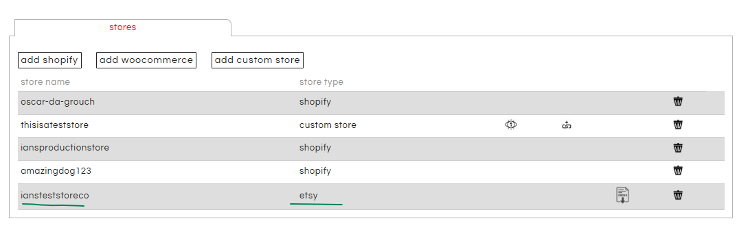 6. You can double check the installation was successful, by navigating the the "Stores" page within your Apliiq account, and confirming that you see your Etsy store linked.