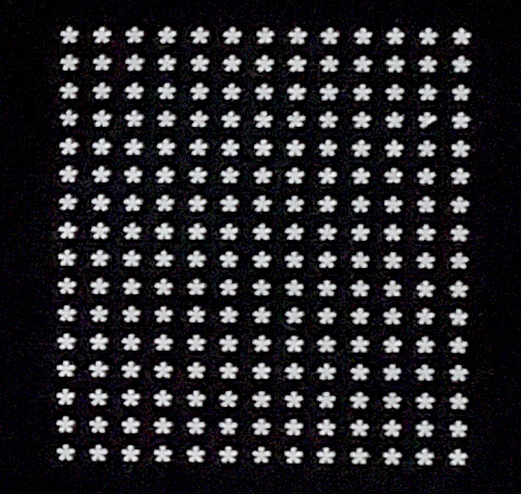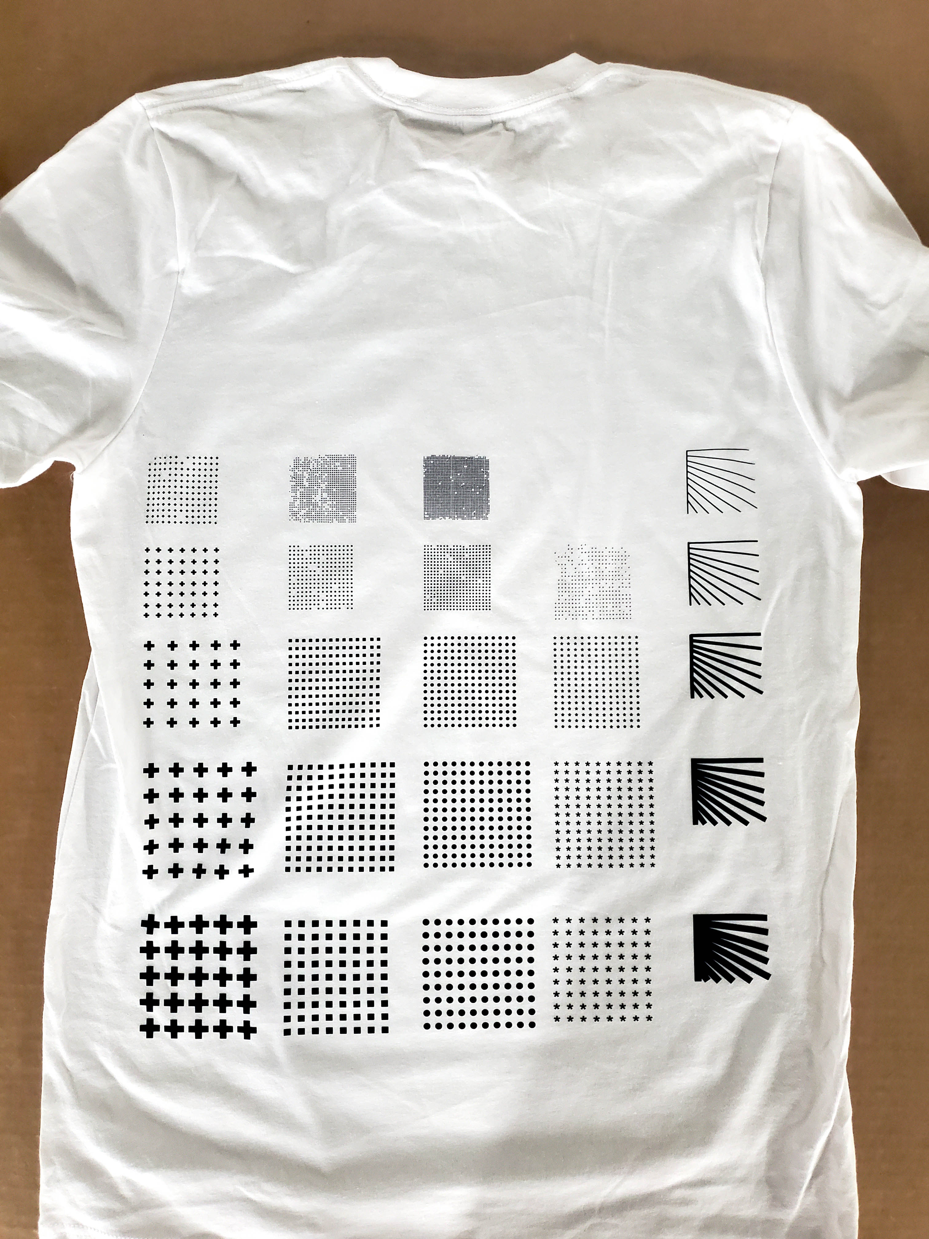 You can see a similar chart above is transfer printed on a tshirt for scale and reference. Just like above, the first row features shapes that are 0.5mm, then the next row shows 1mm, followed by shapes of 2mm, then 3mm, and finally 4mm.