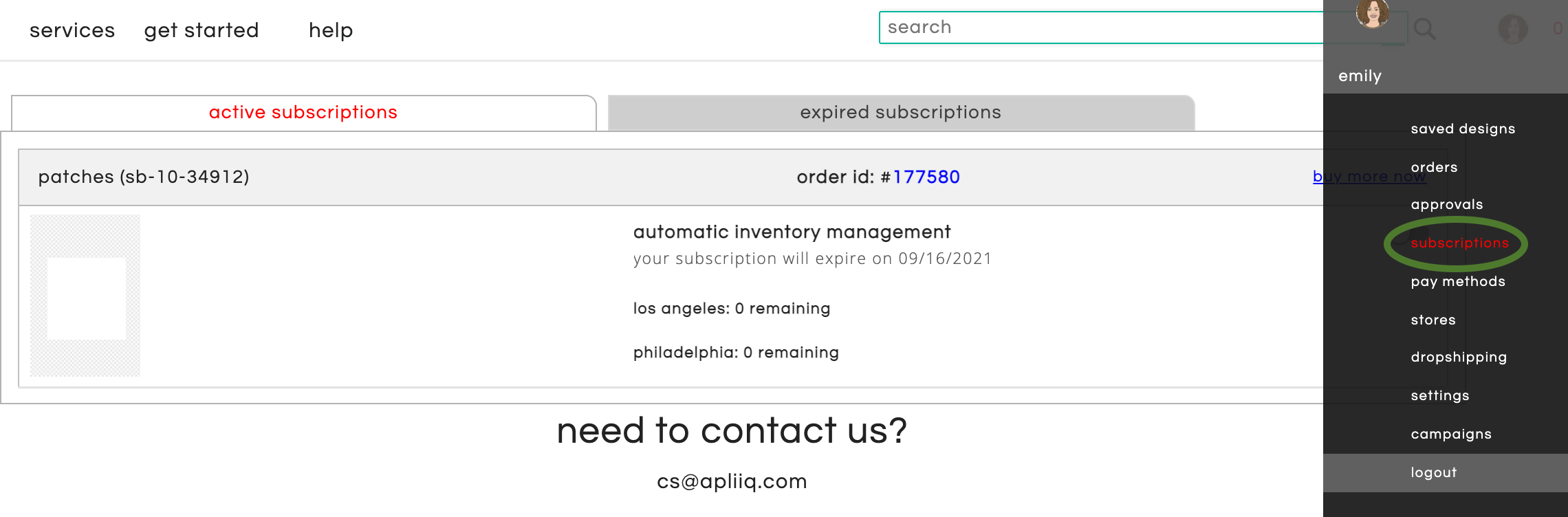 4. Find the subscription in particular for which you want to order more labels. If you don't see the subscription in the active subscriptions, you may find it in the inactive subscriptions list.