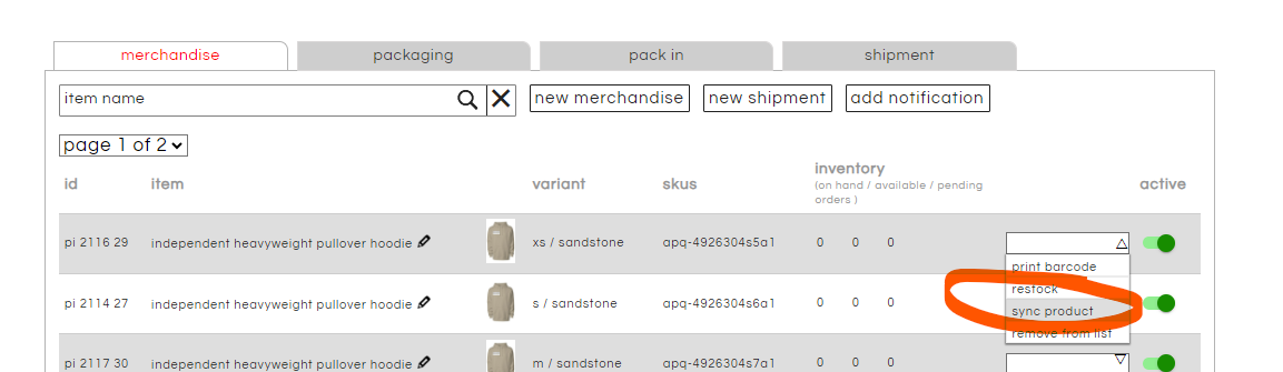 Please note: the add to store option will not be available for screen print products, if they are not added to your warehouse. Add saved designs to your warehouse first, then sync them to your store!